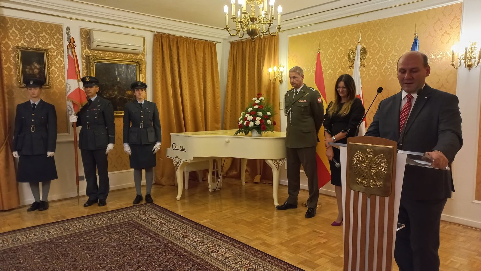 El 4 de Noviembre miembros de Poland First to Fight tuvieron el privilegio de realizar el servicio de guardia de estandarte durante la recepción oficial celebrada en la Embajada de Polonia en Madrid a la que asistió el Secretario de Estado de Asuntos Exteriores Szymon Szynkowski.